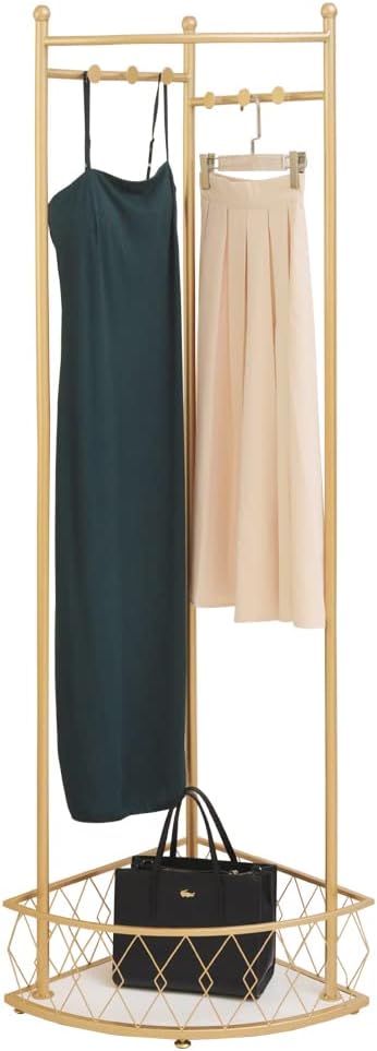 corner coat rack,corner hall tree with 6 hooks and storage shelf,gold clothing rack,Freestanding garment rack,metal corner clothes rack for Hallway, Entryway, Bedroom
