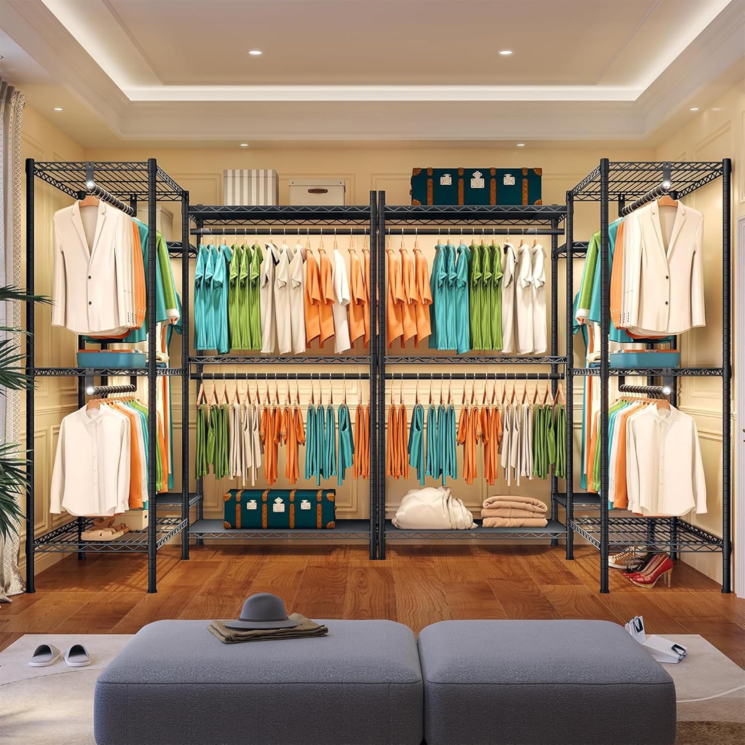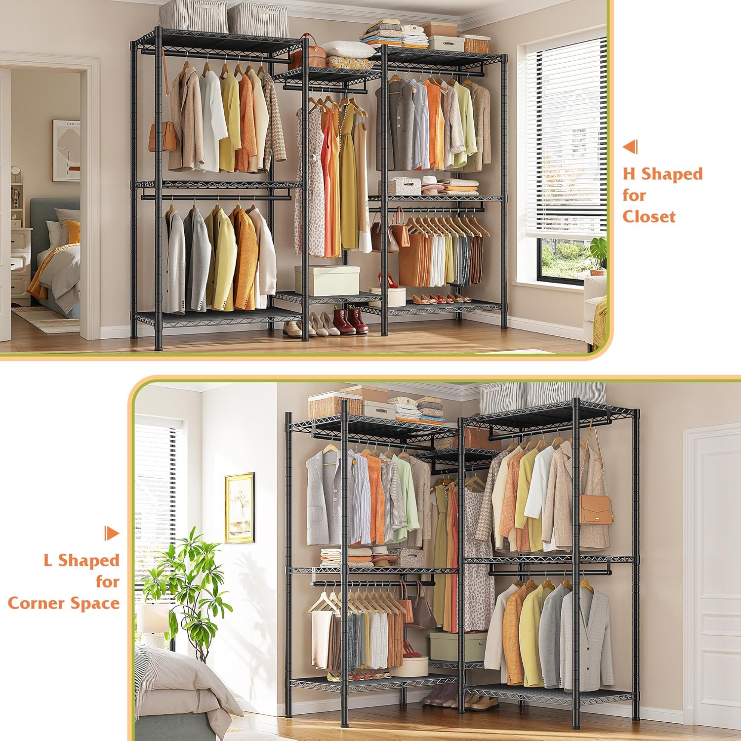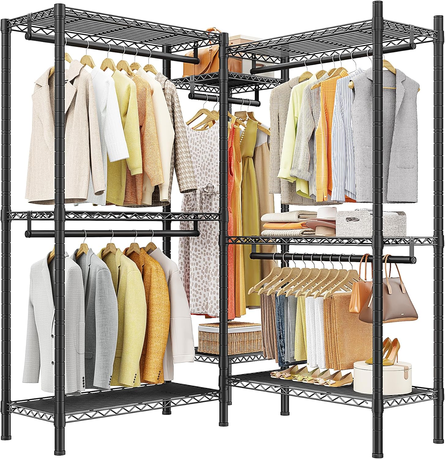 Raybee L Shaped Clothes Rack for Corner, Clothing Racks for Hanging Clothes, 900LBS Heavy Duty Clothes Rack Garment Rack 74.5" W X 18" D X 77" H, Black