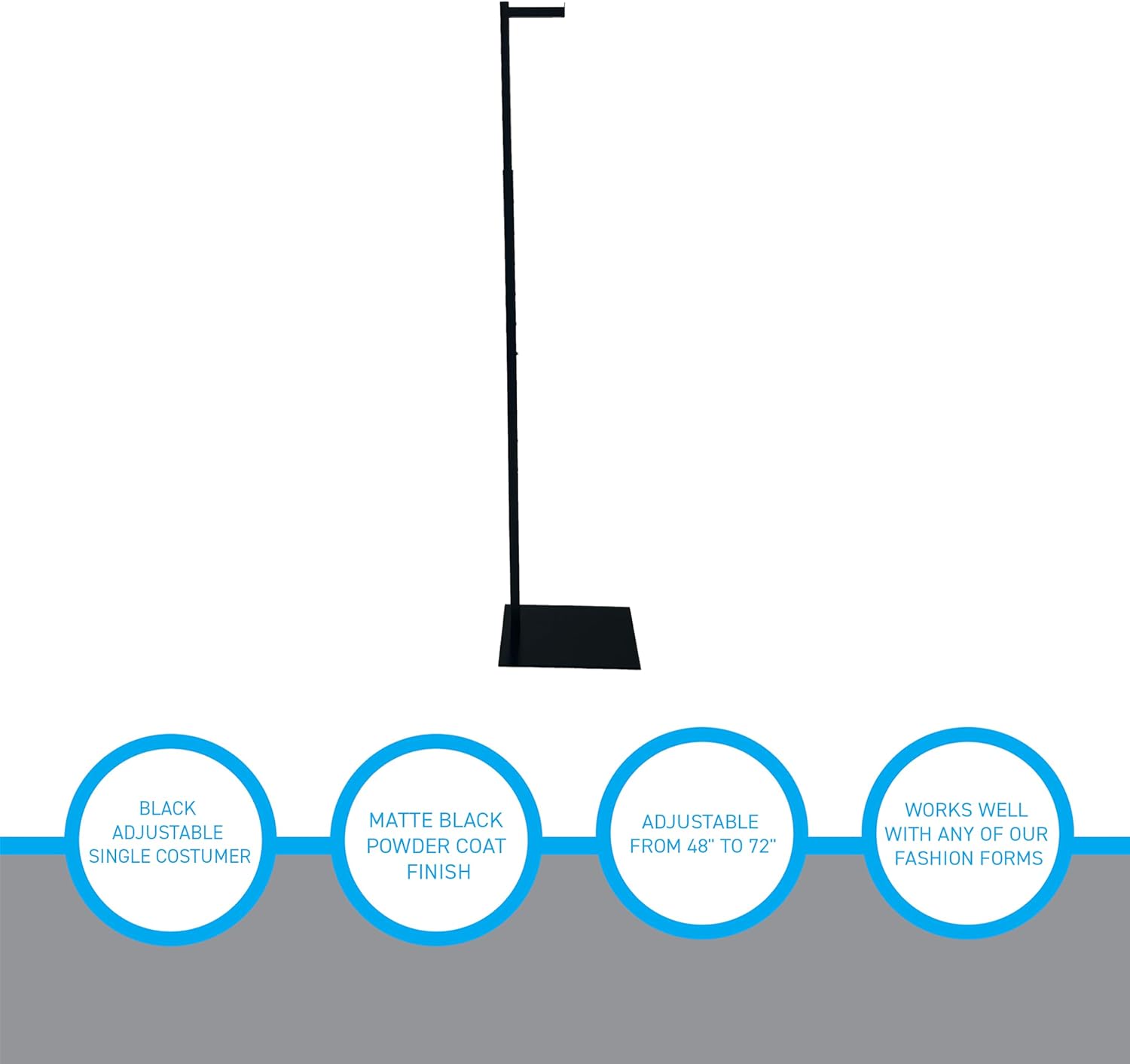 SSWBasics Adjustable Black Costumer Stand – Single Arm Clothes Rack - Retail Clothing and Garment Display Stand – Ideal For Showcasing Hanging Items In Thrift Shops, Boutiques and Retail Stores