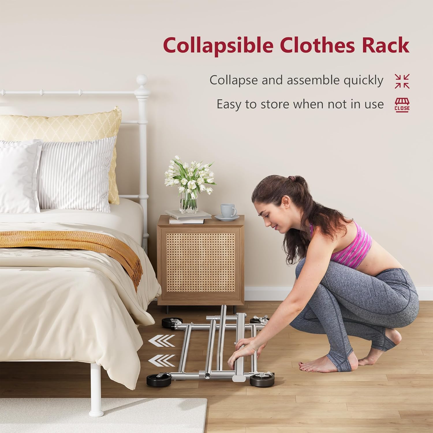 Tajsoon Clothes Rack Heavy Duty Clothing Rack Load 350 LBS, Rolling Garment Rack with Wheels and Extendable Rod, Collapsible Clothing Rack for Hanging Clothes with Bottom Shelf, Chrome